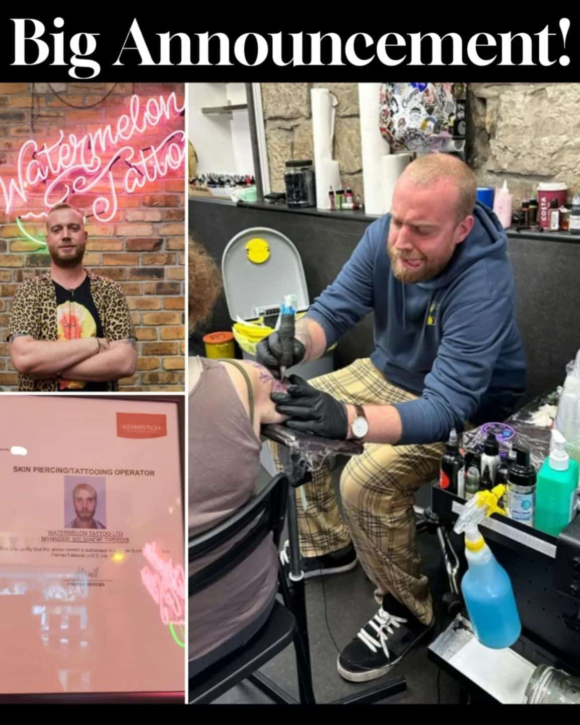 As some of you have already seen and know, Sandie has been whittling away some hours learning to tattoo under the careful supervision of Noemi. Now that his license has been granted we can finally share with you that he will be tattooing part time in the studio.