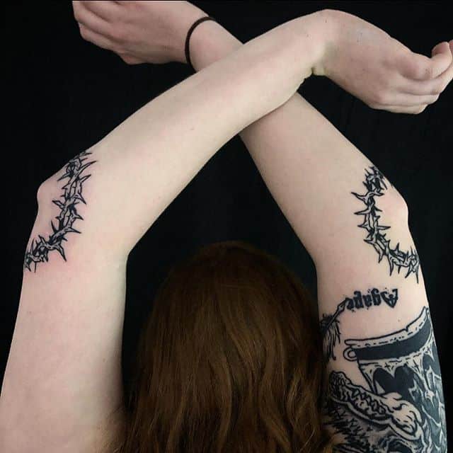 Thorny elbows by Jamie at Watermelon Tattoo. .christ Tags: blackworksubmission, edinburghtattoostudio, elbowtattoos, medievaltattoo, occultart, onlythedarkest, thescottishtattoo, thorntattoos, watermelon_tattoo, watermelontattoo Instagram Profile: http://instagram.com/watermelon_tattoo