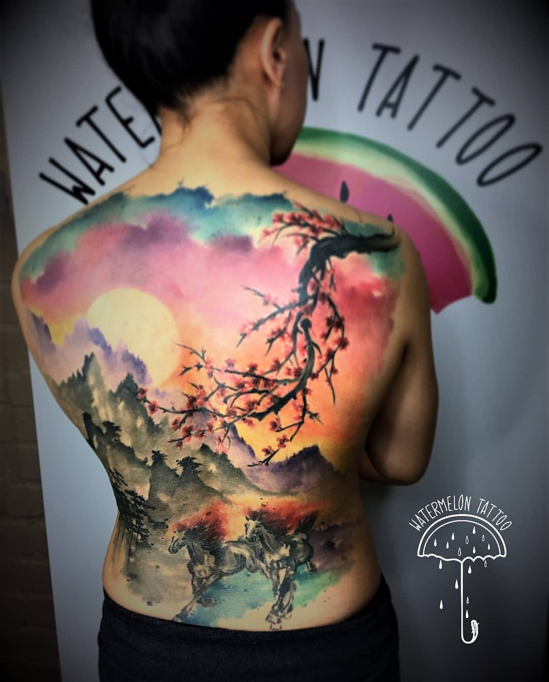 backpiecetattoo, chickswithtattoos, edinburgh, edinburghtattoo, edinburghtattoostudio, femaletattooartist, femininetattoo, girlytattoos, horsestattoo, horsetattoo, italiansinedinburgh, italiantattooartist, mountaintattoo, scottishtattoostudio, watercolourtattoo, watermelon_tattoo, watermelontattoo