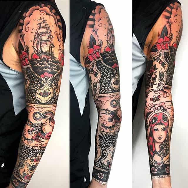 Full sleeve by Sara Sempreverde who will be making her return to Watermelon from 29 April to 4th March! Tags: guestartist, guestspot, italiansinedinburgh, italiantattooartist, traditionaltattoo, traditionaltattooer, traditionaltattoos, watermelon_tattoo, watermelontattoo Instagram Profile: http://instagram.com/watermelon_tattoo