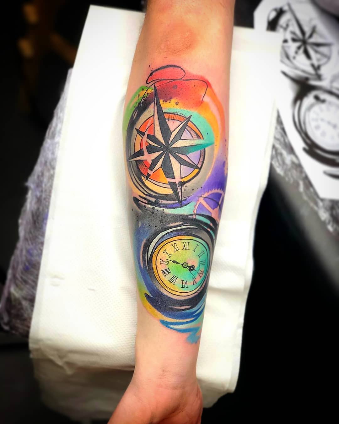 Compass and pocket watch in Noemi's signature style. Tattoo done at Watermelon Tattoo for Gerry! Tags: armtattoo, colourfultattoo, compasstattoo, edinburghtattoostudio, femalefriendlytattoostudio, femaletattooartist, italiansinedinburgh, italiantattooartist, pocketwatchtattoo, scottishtattoostudio, watercolortattoo, watercolourtattoo, watermelon_tattoo, watermelontattoo Instagram Profile: http://instagram.com/watermelon_tattoo