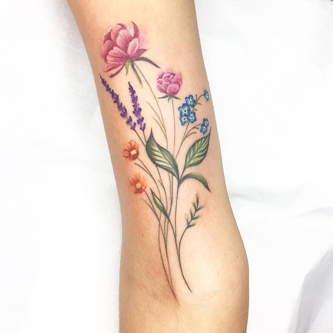 A beautiful wee bunch of delicate flowers by Noemi. Tags: chickswithtattoos, femininetattoo, finelinetattoo, flowertattoo, girlytattoos, italiansinedinburgh, italiantattooers, watercolour, watercolourtattooartist, watermelon_tattoo, watermelontattoo Instagram Profile: http://instagram.com/watermelon_tattoo