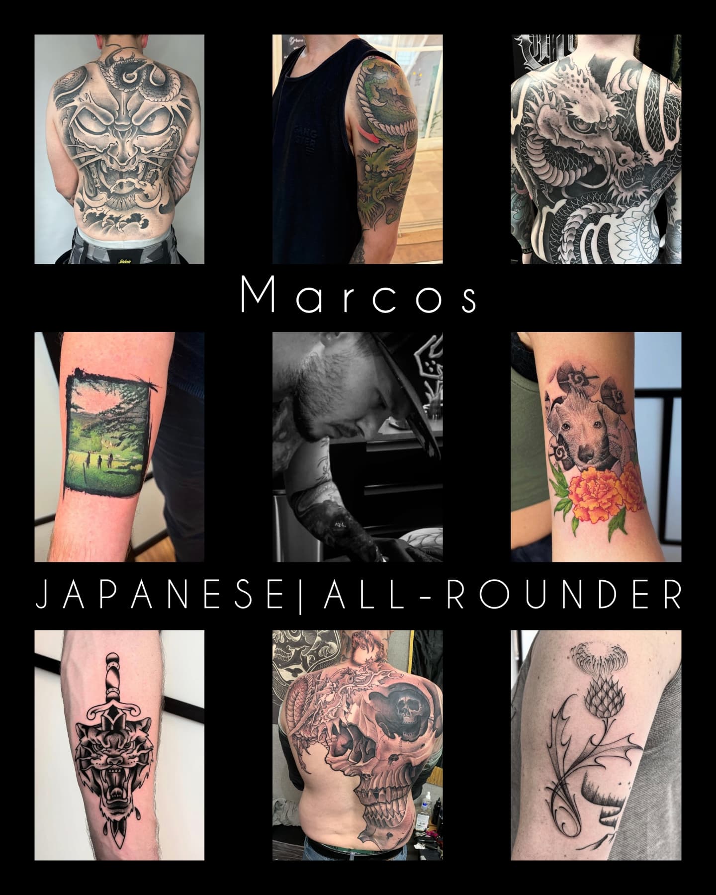 Marcos | franketat2 has over 16 years experience as a tattooer. To say he’s obsessed about drawing would be an understatement, any free time he has in the studio and at home is spent creating his amazing Japanese dragons. He is also ridiculously fast at tattooing, without compromising any quality and fully researches each and every project.