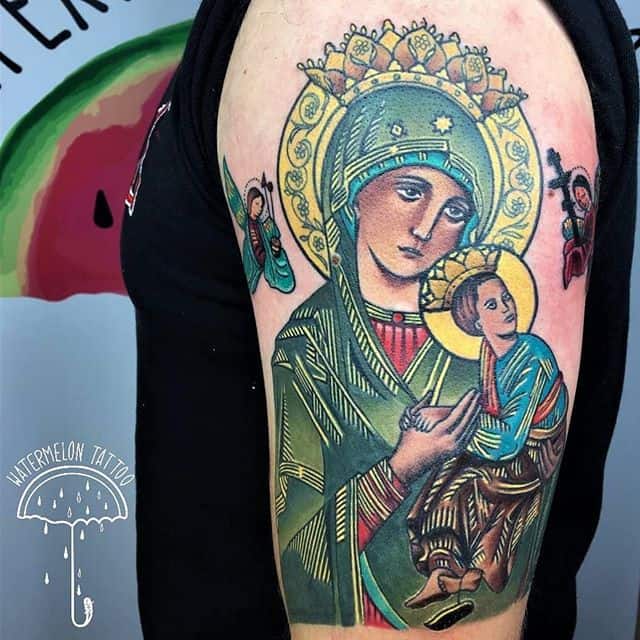 Tattoo by Noemi at Watermelon Tattoo for Chris, thanks for the laughs, coffee and tiramisu!!!! Tags: armtattoo, edinburghtattoo, edinburghtattoostudio, italiansinedinburgh, italiantattooartist, jesustattoo, mothermarytattoo, religioustattoos, scottishtattoo, scottishtattoostudio, watermelon_tattoo, watermelontattoo Instagram Profile: http://instagram.com/watermelon_tattoo