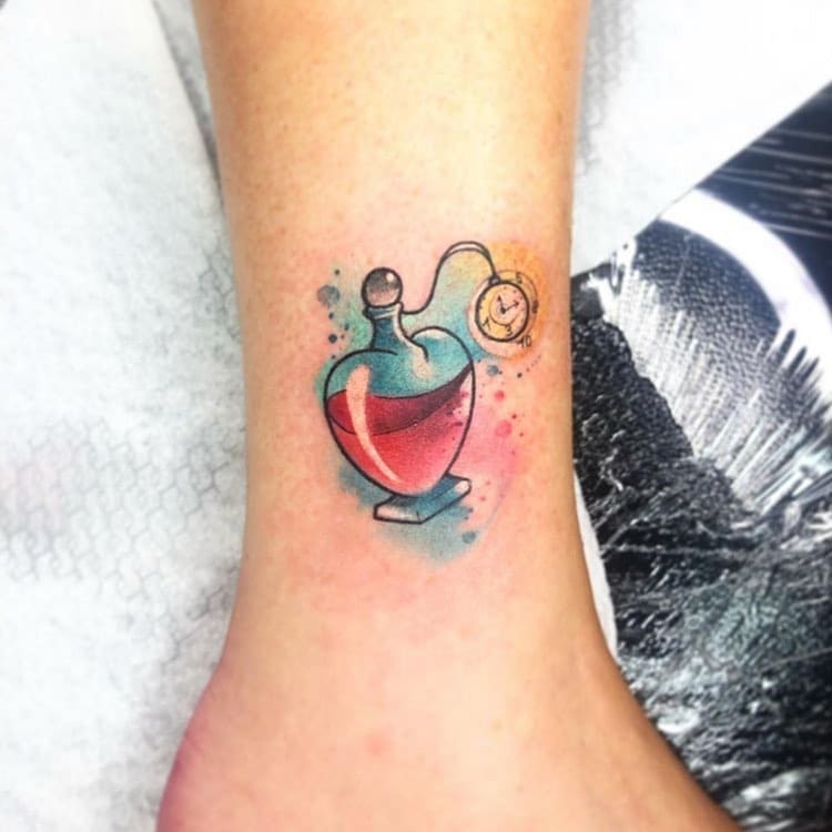 Wee potion from Alice and Wonderland by Noemi last week! Tags: aliceinwonderland, colourtattoo, contemporarytattooing, disrupttt, edinburghtattoo, scotland, scottishtattoos, sketchtattoo, skinart_mag, taot, thescottishtattoo, watercolour, watercolourtattoo, watermelon_tattoo, watermelontattoo Instagram Profile: http://instagram.com/watermelon_tattoo