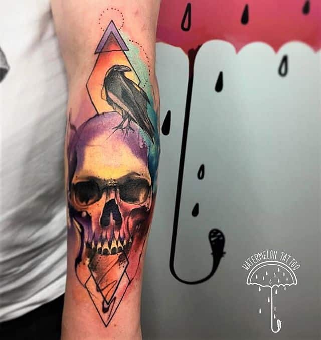 Skull for Noemi' s returning customer Liam (who has impeccable music taste) at Watermelon Tattoo!!! Done with World Famous Ink and Da Vinci cartridges.??????? Tags: birdtattoo, colourfultattoo, edinburghtattoo, edinburghtattoostudio, geometrictattoo, italiansinedinburgh, italiantattooartist, skulltattoo, watercolourtattoo, watermelon_tattoo, watermelontattoo, whenimcleaningwindows Instagram Profile: http://instagram.com/watermelon_tattoo